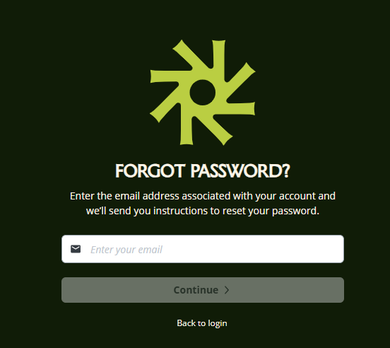 Once you have entered your email address click the Continue button, this will send through a password reset link to your email.