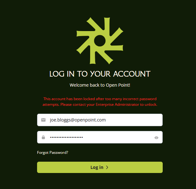 Open Point has many security components, one of which is a mandatory lockout if someone attempts to log in using incorrect details too many times.