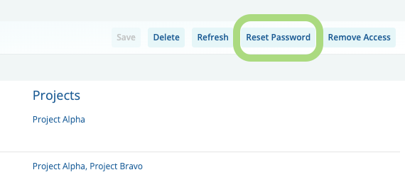 When looking at a User's profile, there will be a small button on the top right-hand side that allows Team Leaders and Enterprise Administrators to reset a User's password for them.