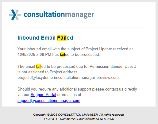 Remember to check whether you are sending the email from a shared inbox, as this inbox also needs its own User account for emails to be received into Consultation Manager.